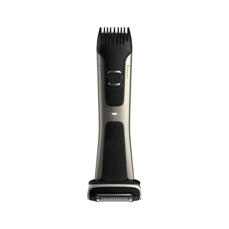 Podes agora utilizar apenas uma ferramenta para aparar e depilar com confiança qualquer local abaixo do pescoço. Utiliza o aparador e depilador para todo o corpo Bodygroom 7000 da Philips para aparar com um único acessório e obter resultados uniformes nas costas, ombros, peito, abdominais, axilas, braços, virilha e pernas.