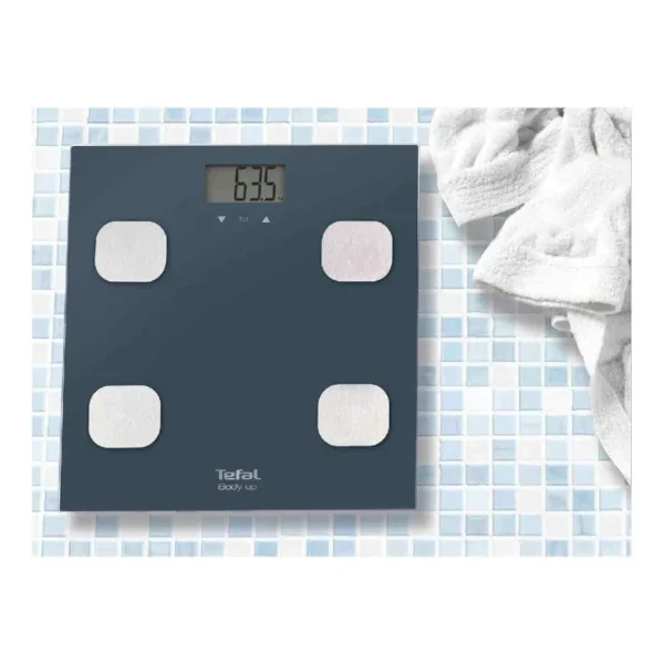 A Body Up usa impedância bioelétrica para calcular a tua composição corporal. Para além de registar o peso, esta balança calcula também a tua gordura corporal (em %) de uma forma precisa e completa. A balança envia uma pequena quantidade de correntes elétricas através do teu corpo, graças aos 4 sensores de massa gorda localizados na mesma, para determinar a quantidade de massa gorda. Os resultados obtidos, em conjunto com os dados de perfil, permitem calcular a massa muscular. A gordura corporal é obtida através da diferença entre o peso total e a tua massa muscular.