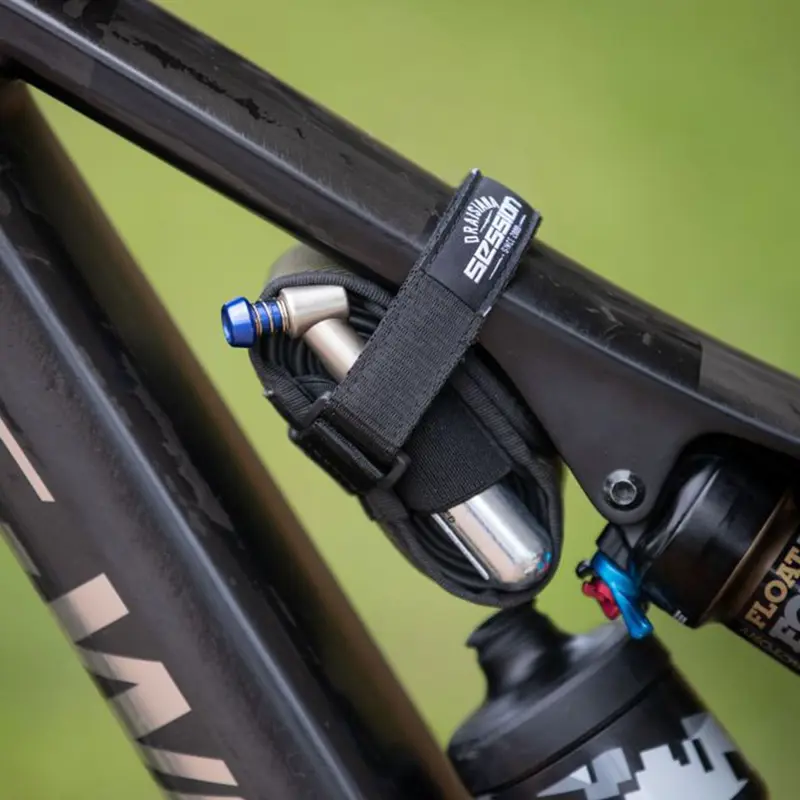 Com este acessório pode fixar os seus suprimentos em qualquer lugar com espaço suficiente que tenha na bicicleta, no quadro, no espião do selim, entre outros locais.