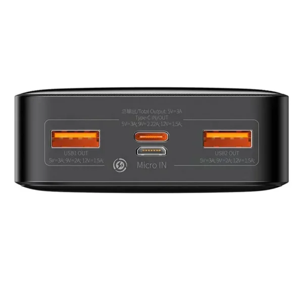 Tive alguma vez o teu telemóvel sem bateria quando mais precisavas? Este powerbank pode resolver isso num instante. Ao viajar, é só ligar o dispositivo ao teu telemóvel. Podes carregar até três dispositivos ao mesmo tempo. Tem uma capacidade de 20000 mAh e uma potência de saída de 20 watts. Vem com um ecrã LCD que te permite controlar o nível de carga do powerbank. Podes carregá-lo através de uma porta Type-C ou uma porta Micro USB. O dispositivo possui 7 níveis de segurança